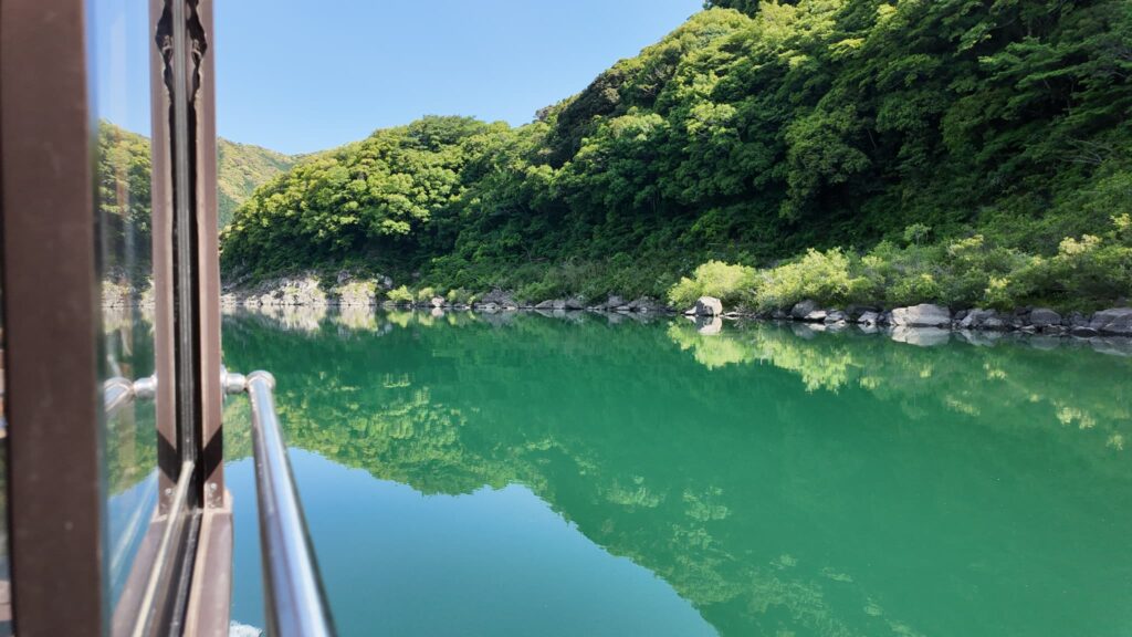 船が静かに動き出した瞬間、川面に映る青空と緑の山々に思わず「わぁ…」と声が出るほど感動。