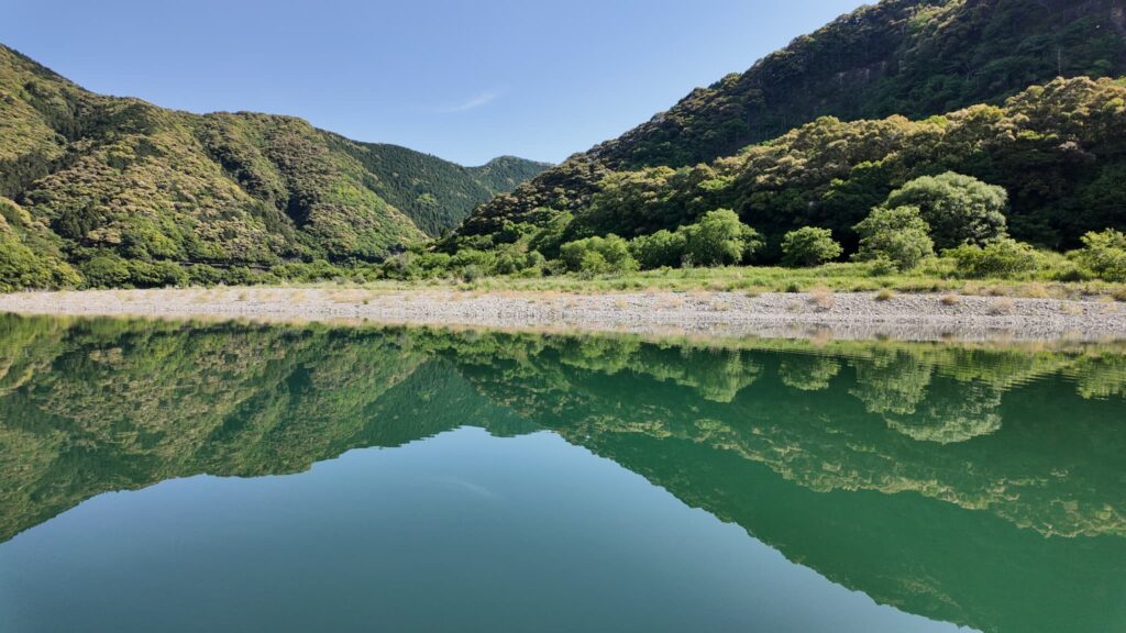 川面には青空や緑の山々が映り込み、季節や時間帯によってその表情を変える姿は、訪れる人の心を魅了します。